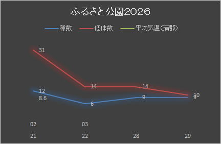 公園には、ヤマザクラ・ユキヤナギ・コブシが咲き、ソメイヨシノも花開き始め、まさに花咲き誇る春到来となった。野鳥たちのさえずりもどんどん増えていく。ヤマガラがさえずっている。そのそばから、メジロの地鳴き、シロハラの地鳴き、道端で採餌するアオジ。センサスコースは野鳥の姿・声で満ちていた。至福の時である。気温は5度を割っている。三寒四温は真実であった。