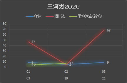 三河湖へと車を走らせた。雨が降らないのでどの川も川底が干上がっている。岡崎市を流れる雨山川・乙女川も心細いほどの水量である。カワガラスは大丈夫か?凍結の心配が無くなったのはありがたい。1年前のことだ。トラッキングコントロールが作動してエンジン出量が絞られたことがある。結局、トラッキングコントロール解除ボタンを押すことで解決することを知ったのは、現場を何とか切り抜け安全地帯に出てからであった。雪道は苦手だ。できることならば避けたい。それでも、冬季でも出かけるのだから救いようがない。待ちに待った鳥に出会えた。久しぶりに聴いた声。けっしてきれいな声ではない。群れで鳴くから何の声かと思わせると思う。自分には懐かしい声なのだが。もったいぶらずに言う。マヒワであろう。アトリの仲間の中でも最もかわいい鳥である。色もきれいだ。いわゆる鶸色。そう言っても分からいかもしれない。群全体の個体数は分からない。声の広がりもかなりあり、普通でも100羽程度の群れは珍しくない。あちこちで聴かれたので合計すればそのくらいはいるのでは。白い花がついた大きな樹が見えた。シデコブシかなと思うがはっきりとは言えない。ルリビタキ・ミソサザイも確認できた。ミソサザイはさえずりであった。白い花のもう一つはアシビである。ここにはアシビが多い。低木常緑樹のかなりの部分はアシビである。釣鐘状のかわいらしい花を咲かせる。しかし、動物が食べると大変なことになるらしい。