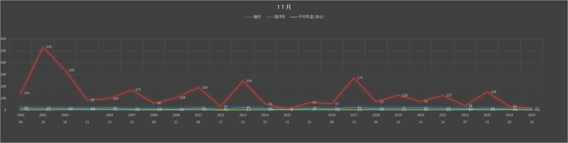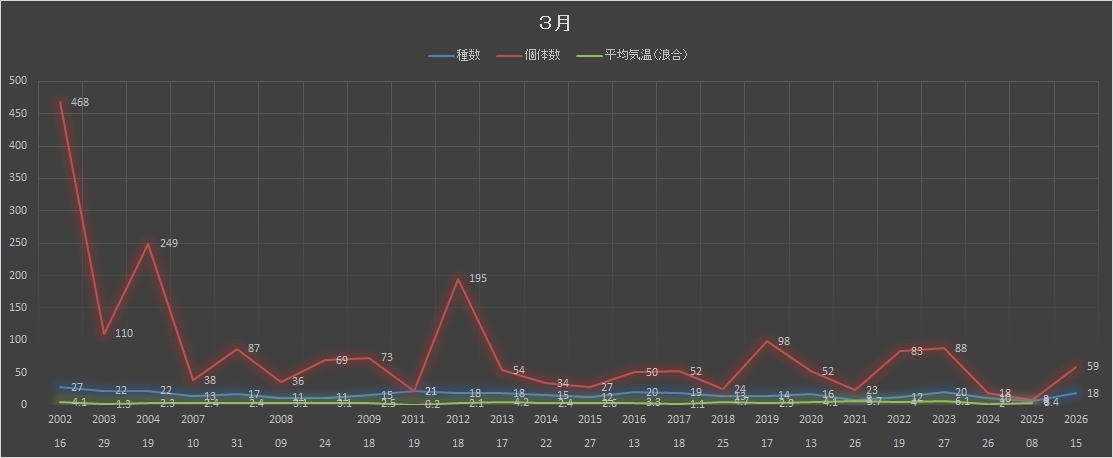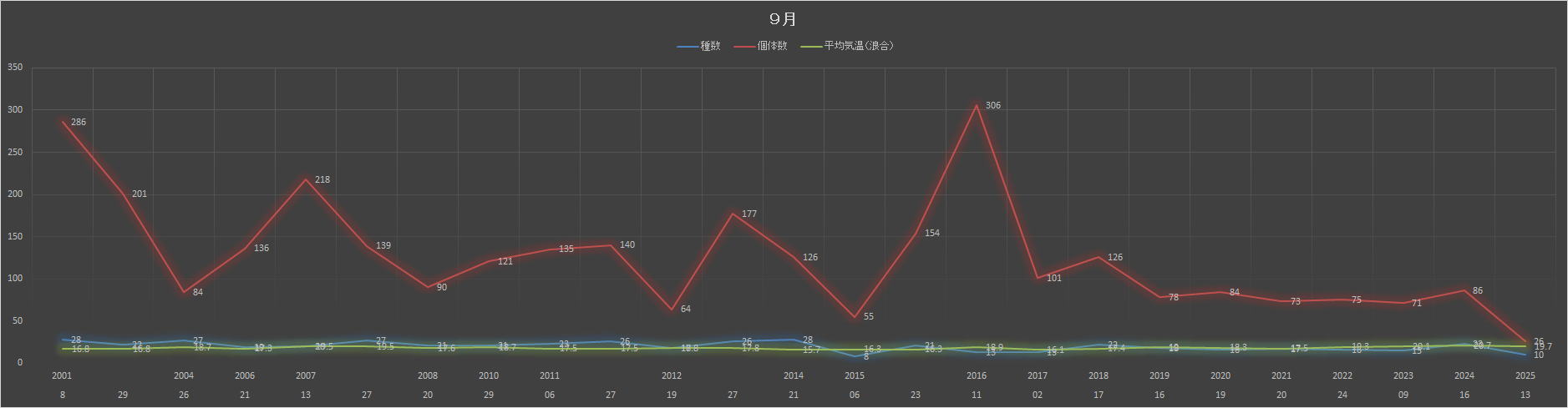 ラインセンサス方式で観察を開始したとき思ったのは、10年・20年のスパンで観察を続けたら何か分かるかもしれないということであった。何か分かったかと問われれば、まだまだ途上ですと答えるしかなさそうだ。