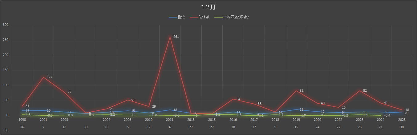 | ウソ | ウソ | Pyrrhula pyrrhula | 1 | 1 | 1 | 1 | 4 | 3 | 5 | 1 | 2 | 2 | 1 | 3 | 25 | ||||||||||||||