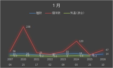 積雪期である1月の記録は2007年のものしかないとは。だらしないが雪は苦手だ。2020年以降は4駆動車 (軽トラ)で頑張っている。2022年からは小型貨物車だ。