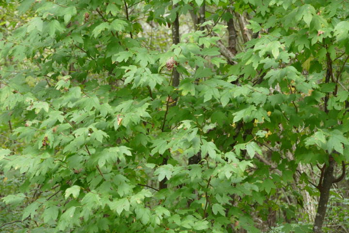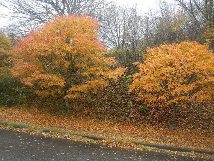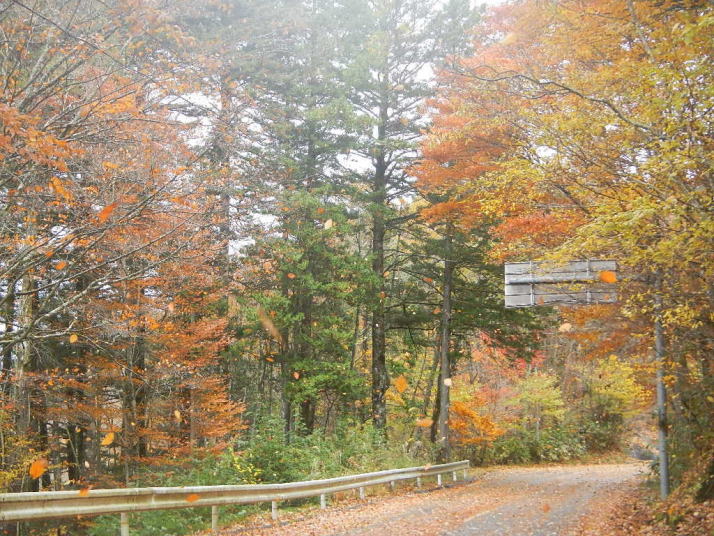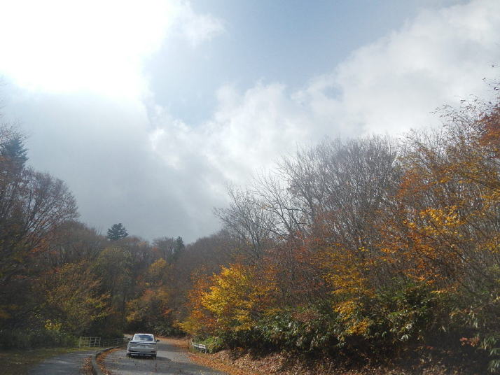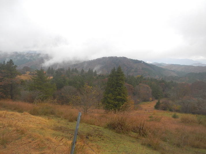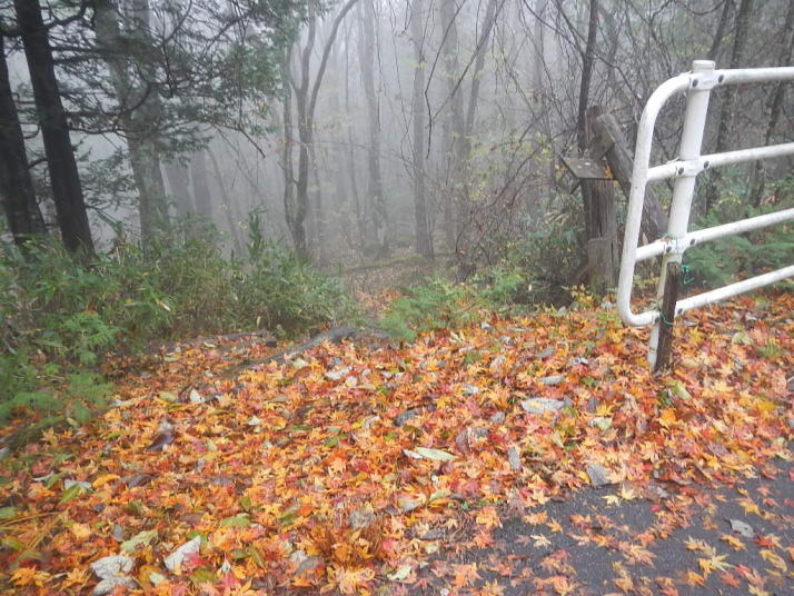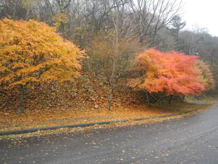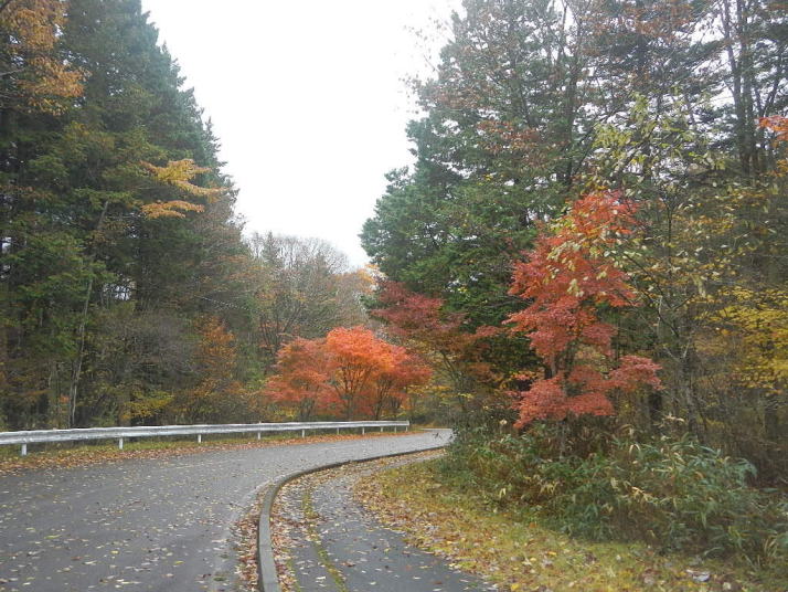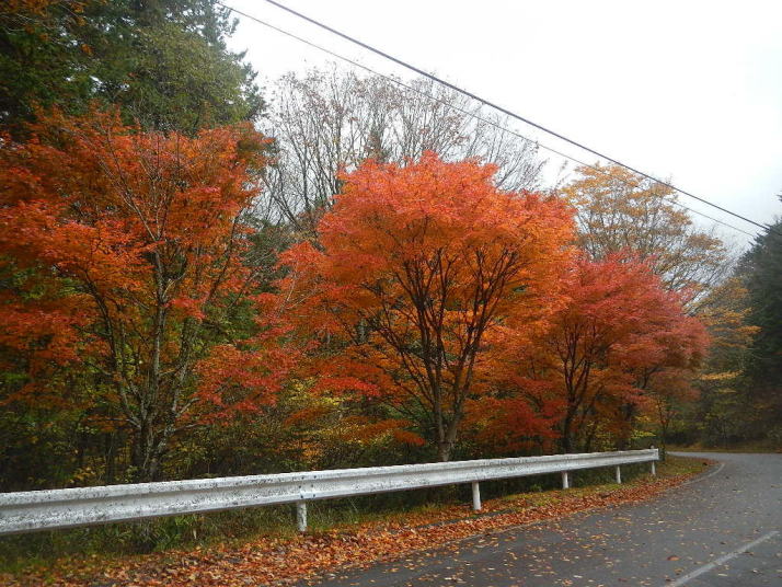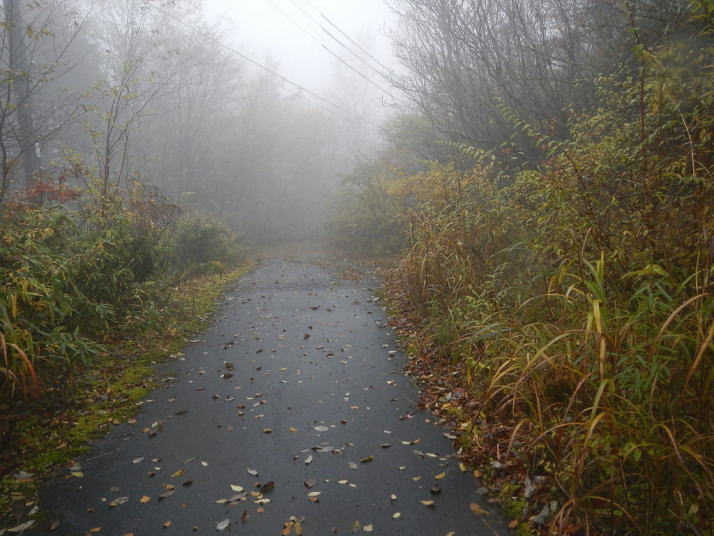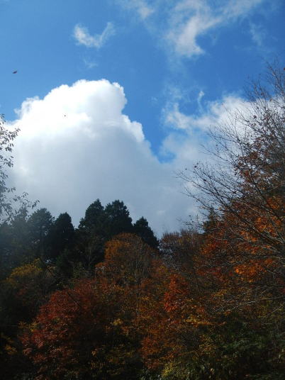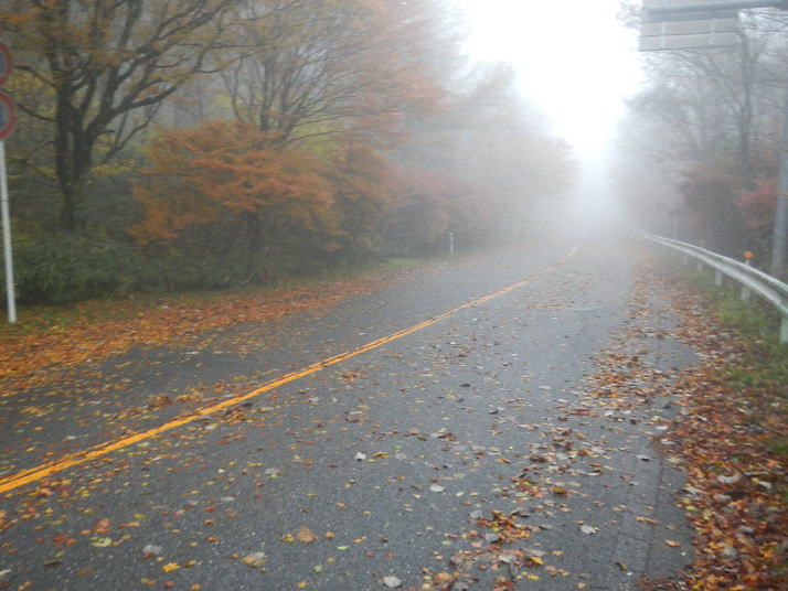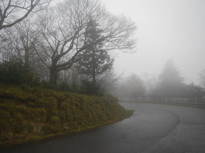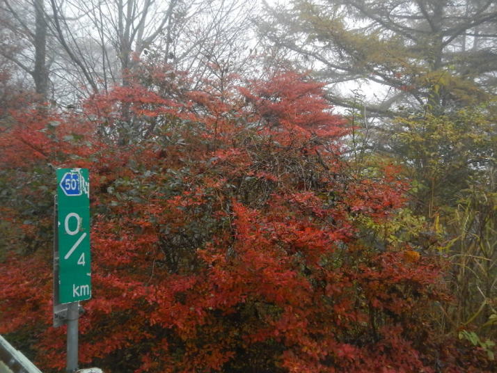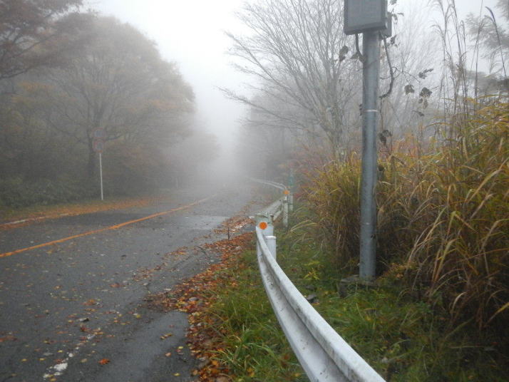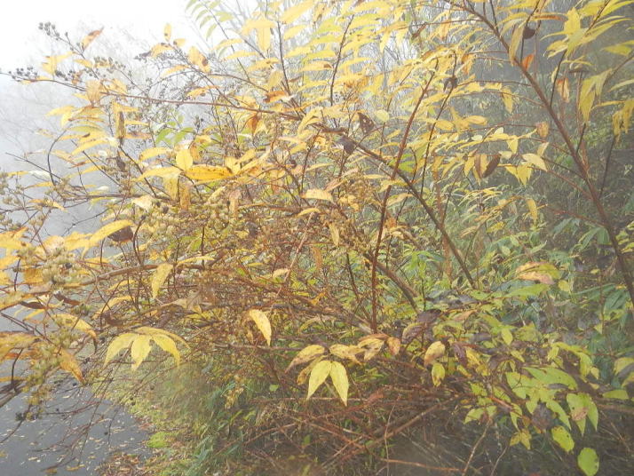 茶臼山までの道中はとても気分が良かった。標高が上がる度にモミジの色が鮮やかになっていった。ところが、豊根村に入った途端天気が悪くなった。景色はよいのではあるが暗い雲が湧くように広がった。茶臼山の山頂は雲の中。小雨とかなりの強風。今更止めるわけにはいかない。傘を差し歩いだす。防寒対策だけはやって来たのでそれがせめてもの慰め。雲の中のため姿はほとんど見られない。それだけならまだ良いが風が強いのは困った。野鳥観察の天候ではなかった。そのような厳しい条件の中でも、この鳥たちは悠々と活動しているのだ。それは、ハシブトガラスとヒヨドリ。普段は厄介者のこの鳥たちの声も、なにもいないと思われる条件下で聴くとありがたいと思われてくるから不思議である。都会ではやれ騒音だのゴミまき散らしなどと嫌われ者であるが、人っ気のない山奥で聴くと全く違って聴こえるのだ。ハシブトガラスの声は美しく、ヒヨドリの声は七変化で飽きない、とくるのだ。彼らは山から下りなかったら良かったのに、よくそう思うことがある。