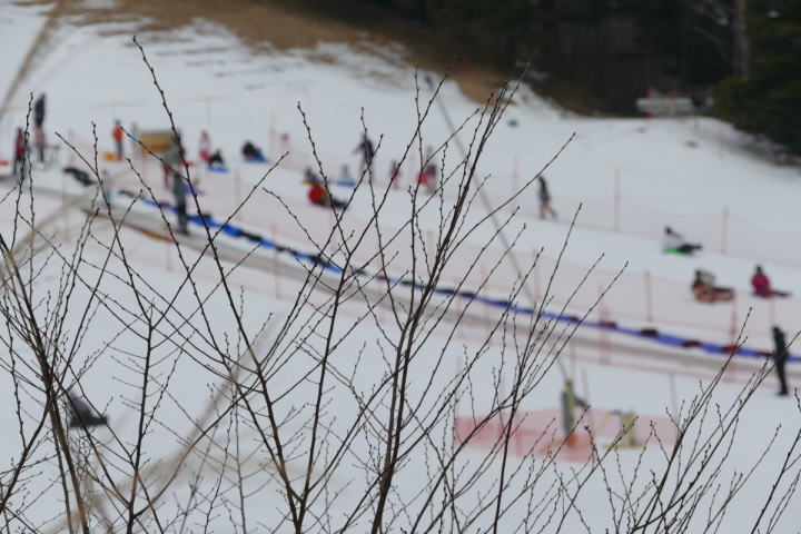 積雪は少ない。スキー場も困っているのでは。