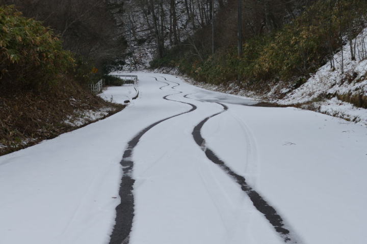 白い道にドキリとした。あられのようで乾いた感じ。そのため滑ることもなかった。