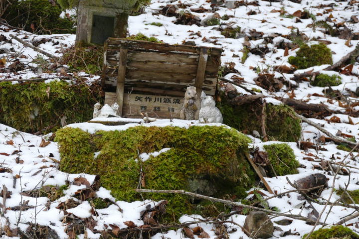 心配していた千万町町から作手への登り坂の雪面は大したことはなかった。もう安心だ。寺の入林道そのものの積雪もあらかた消えていた。しかし、凍結路の坂道はとても危険。こんなときこそ、スパイクで武装した長靴の出番である。ザクザクとスパイクの音を鳴らして歩き始める。湧き水が氷柱に変身している。車外温度を見る。気温は1度。手先が一番冷える。軍手は防寒効果は無い。しかし、指先の滑らかさが必要となる双眼鏡のフォーカスやカメラシャッター操作は堅い手袋では不都合。ポケットに突っ込んで暖を取るのだ。この寒さでも小鳥たちは元気。ヤマガラ、シジュウカラ、ヒガラ、エナガが小声で鳴いている。まさに耳のテストである。そこが楽しいのだ。アトリ科の鳥たちがいないか気になる。イカルの地鳴きは良しとして、それ以外の鳥を探している。マヒワ、アトリ、ウソがいたら嬉しいのであるが。最近は駄目なことがほとんど。どうしてしまったのか?昼食はJAのスーパーでパンとハムカツだ。
