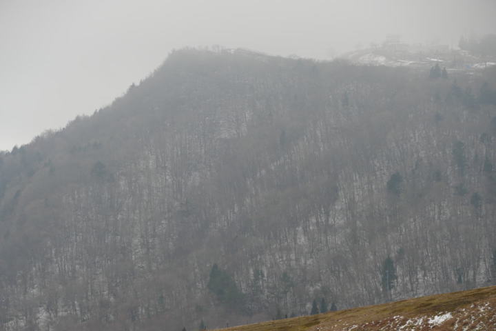 豊根の国道から登山道に登る口にある、チェーン装着要否の表示をまず見る。「本日はチェーンなしで通れます」とあった。麓から見ても雪が積もっているようには見えない。雪が少ない冬なのだろう。スキー場を開いたとの記事をみたのにおかしい、雪なんてないぞ、そう思って見渡すと、一番緩いスロープの一部だけ雪をつくり、子どもたちが中心となって滑っているのが見られた。コガラとヤマガラがいる。両者はコガラ属で遺伝的にも近い。地鳴きも大変よく似ているので間違えるかもしれない。茶臼山は茶臼山と萩太郎山との双耳峰である。コルの部分は風の通りが強い。鳥の鳴き声もかき消されてしまうほど。村道1号線は冬の交通規制に張っている。広い道路は私専用。全く雪がないかと言えばそうでもない。日陰になっている部分には雪が残っている。その雪の上に見られるのは地元の住民たちの足跡。大きいのや小さいの。古いのや新しいの。シカ・イノシシ・ノウサギ・どんな動物が通ったのだろうか。想像するだけで楽しい。ハシブトガラスの鳴き声も、このような山奥で聴くと、何か物悲しい声に聴こえるから不思議だ。都会の喧騒の中で聴く声とは別物に思える。北斜面に来た。道路は真っ白。黒いタイヤの跡が曲がりくねっている。今日は南アルプスは雲の中だ。晴れていたら素晴らしい白銀の峰々が見られるのに。やはり、コガラがよく見られた。真冬でも山に居座りつける頑固な鳥。そう思ってみるとコガラが愛おしい。