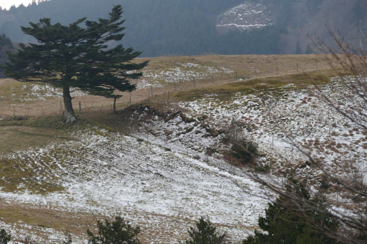 カケスの声が多かった。この日は風が強く山なりがあったし、林道に沿ってある高圧線からの重低音が四六時中唸り声をあげていた。従って、声の小さな鳥は鳴いていても分からないことになる。だからカケスの声ばかりが聴こえてくるのだ。それでも耳をダンボにしてみる。ヒヨドリはカケスに次いで声が大きい。(カラスは別格として)だから大体聴こえる。シロハラとウグイスの声は似通っている。明らかに違う声を2ヵ所で聴いた。記録にはウグイス・シロハラと書く。アオジもいたがこちらは姿で分かった。普通山のバードウオッチングは声が主だと思っている。木々で姿が遮られるからだ。ところが、山の樹々が唸り声をあげた途端立場が逆転する。アオジについては、この冬実に多くのアオジを見てきた。室林道よりも少し低い、川沿いの灌木地で多かった。