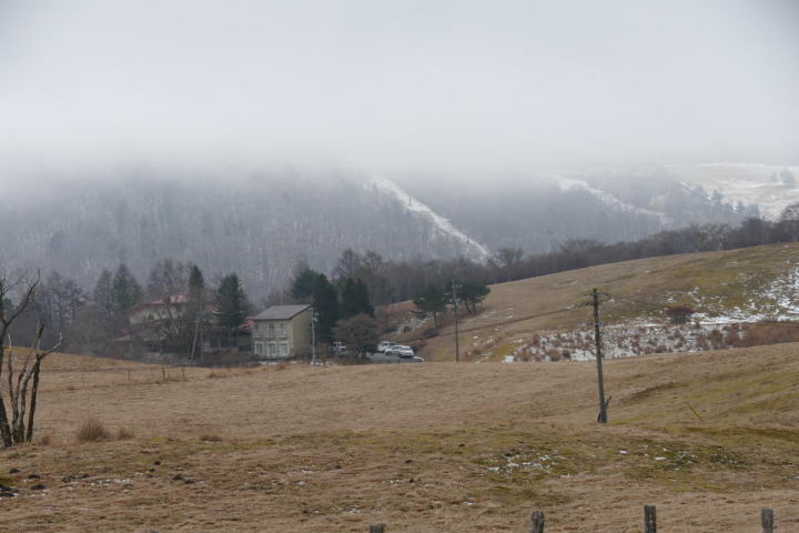 道路にはほとんど雪は残っていない。霧の中を歩いているようなものだ。
