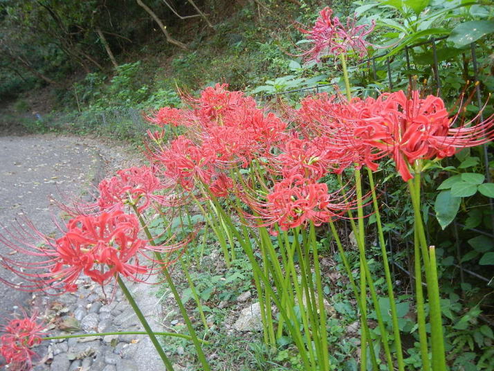 空気感に微妙に秋の雰囲気がある。ヒガンバナは自然のものではなさそう。