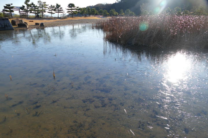 朝日が黄色く山を照らす。公園から見る街の景色は半分陰になっている。公園の山からはヒヨドリたちの威勢のいい声。時折、ハシブトガラスの澄んだ声も混じる。松の緑と芝生の枯れた色とが妙に相性がいい。ヒヨドリの声が圧倒的ではあるが、耳を澄ますとメジロ・ヤマガラ・シジュウカラなども確認できる。ウグイスとシロハラはそれぞれ1個体づつ声を聴く。池にはうっすらと氷が張っていて、今朝の寒さが分かる。車のフロントガラスにもビッシリと氷が張っていた。この冬一番の寒さではなかろうか。