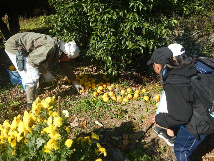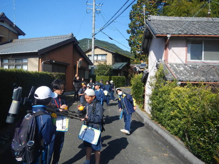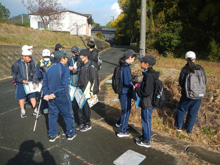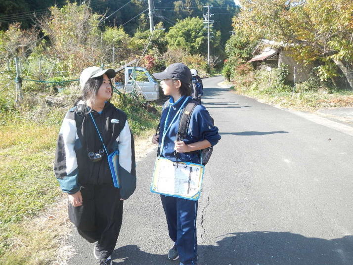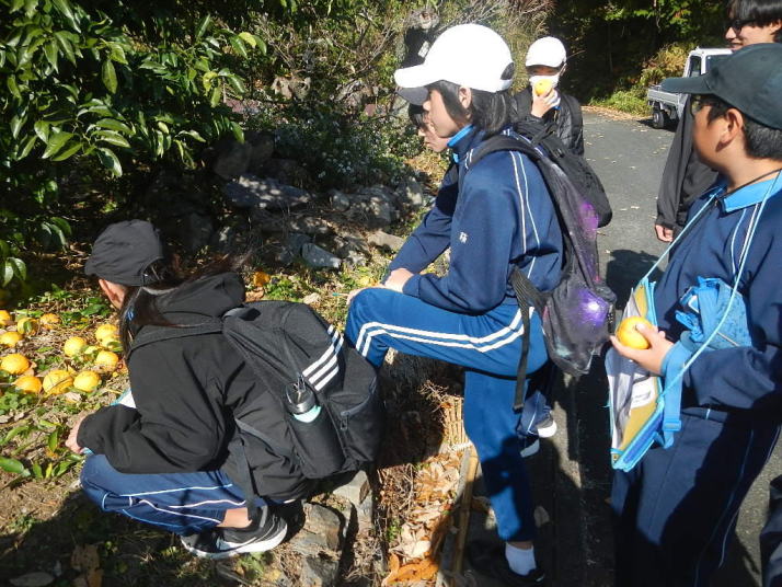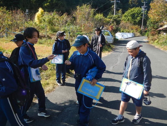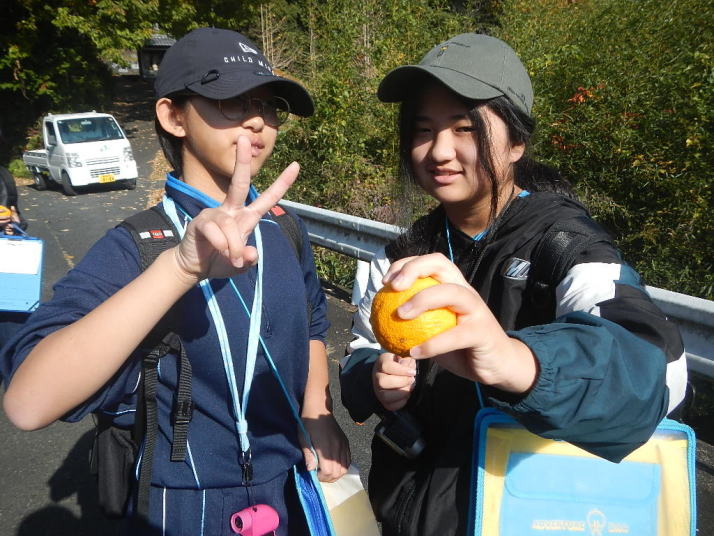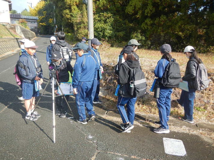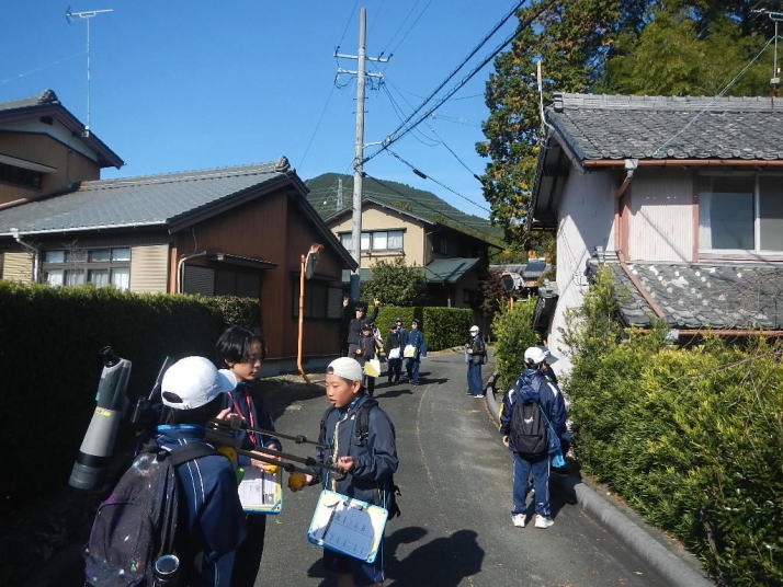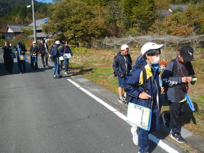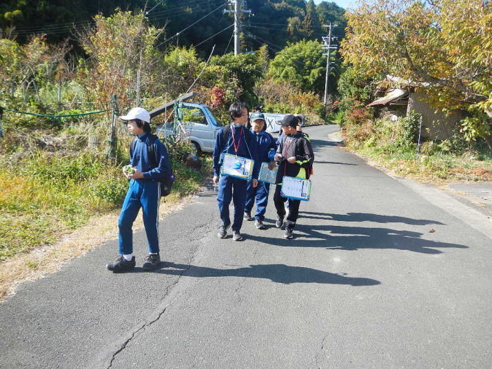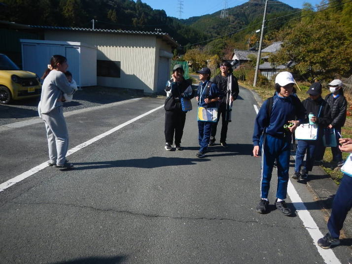 曇り空がみるみる青空へと変わっていく。その空にはトビ20羽以上が竜巻のように上昇していく。何らかの行動であることには間違いない。学校を出発して様々な鳥の声を聴く。ヒヨドリ、ハシボソガラス、ノスリの声が聴こえる。そこで、先のトビの群れを見たのだった。畑にある樹の中で珍しい小鳥を見た。ビンズイだ。少し前に見た鳥ではあるが、同じ仲間のタヒバリよりも個体数は少なく、偶にしか出会えない鳥なのだ。児童たちも姿を見つけた。室川に向かう切通しでカワセミの巣らしき穴を見つけた。子どもたちにも見てもらう。水平に開けられた穴が下に向かっているのが見て取れる。カワセミの巣の特長だ。川沿いに歩くと、草むらからホオジロが飛び立つ。つがいのような2羽も見られた。カワセミを探して室川添いに歩く。熊野社が見える。せっかくなのでお参りをする。帰路では地元の人たちとの交流タイムが。柚子を収穫している。「持って行きな」と言ってくれたので、手に手に柚子を持って歩く。後ほど先生から、体調を崩して参加できなかった児童のことを聞いた。そして、会ったら声を掛けてくださいとも。その時は、分かりましたと答えておいた。それが思わぬことでそれを実行することができた。詳しいことは省くが、体調は戻ったか聞いたところ、大丈夫と答えてくれた。ホッともしたし、会話ができて良かったと思っている。