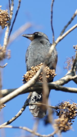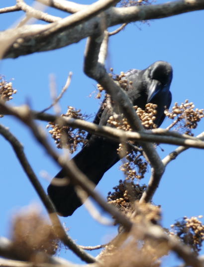 昨日の雨が空を一層きれいにした。林道を歩くと、両側から迫って細いすじのように青空が見えて、いつもきれいだなーと思う。冬季の林道には冬鳥として様々な鳥がやって来るが、アトリ科の鳥たちには特別の思いがある。彼らは群れを成し、丸くなって山を飛び回る。ところが、近年その姿を見ることが少なくなった。さみしいことだ。この日は、アトリ科がいないのをカバーするに十分な大物を贈ってくれた。本当に大物なのだ。ヤマドリのオスとメスがゆっくりと道端に佇んでいたのだ。全く動ずることなく佇んでいた。オスは無論立派であるがメスも堂々としている。ミソサザイ・ヒガラの声も確認できた。冬の山に来たとの思いが湧いてきた。深山で鳴くハシブトガラスは独特の味わいがあるように思える。哀愁を帯びているのだ。
