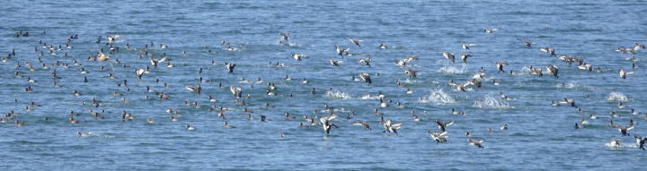 スズガモが空を舞う、海に浮かぶ。大自然のスペクタクルだ。