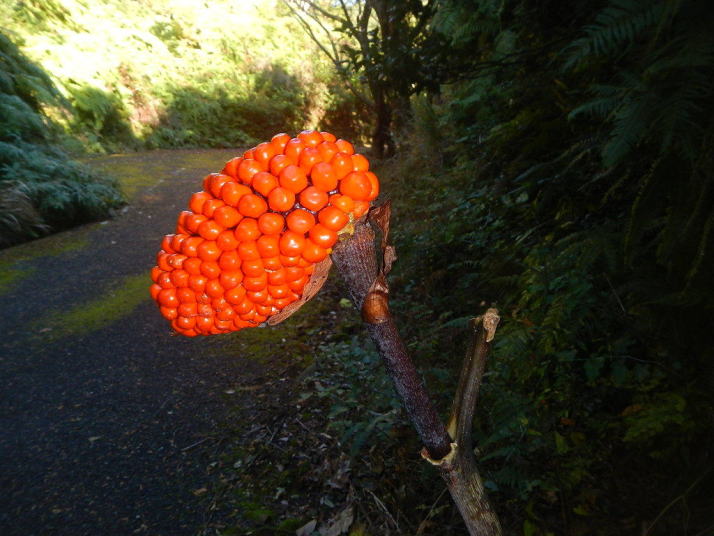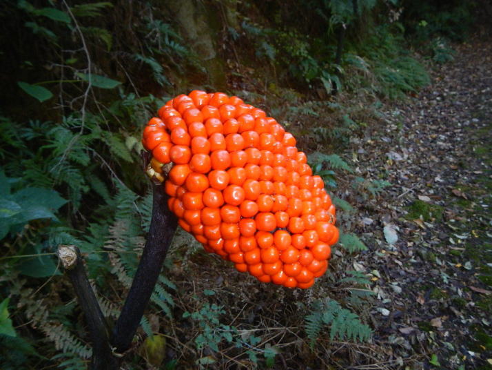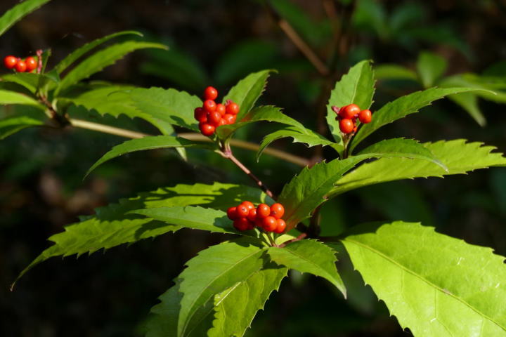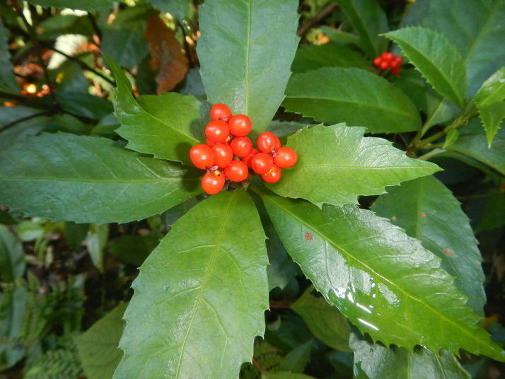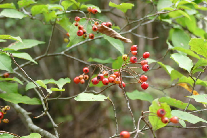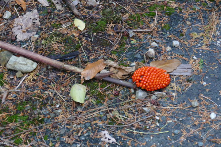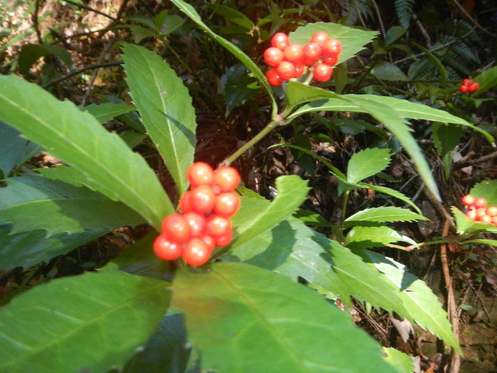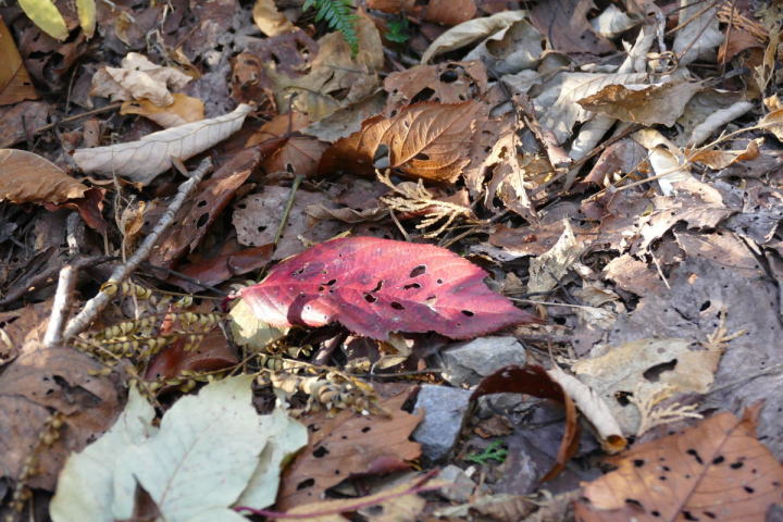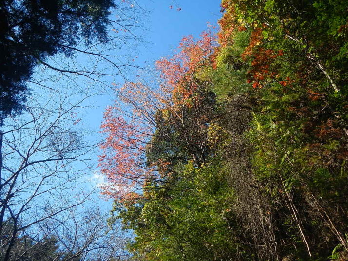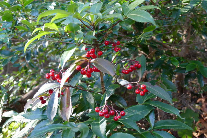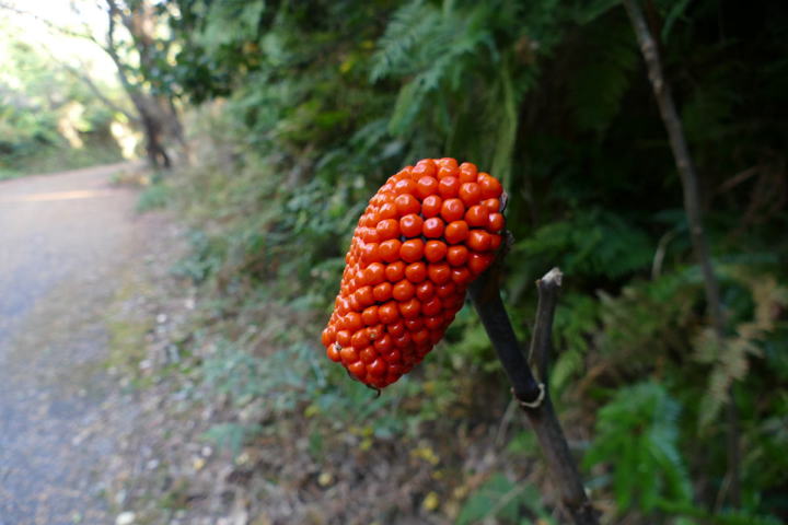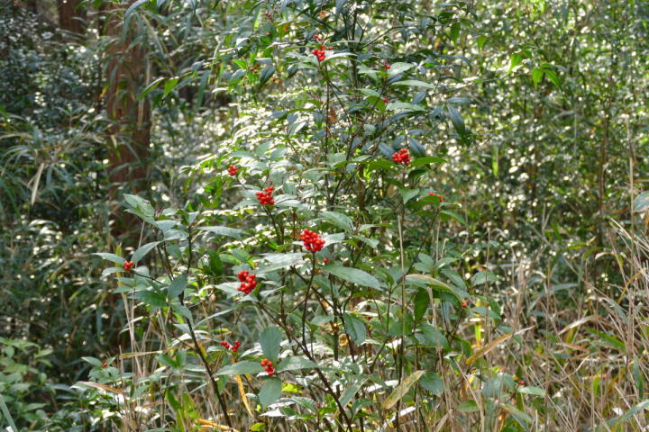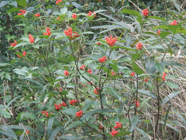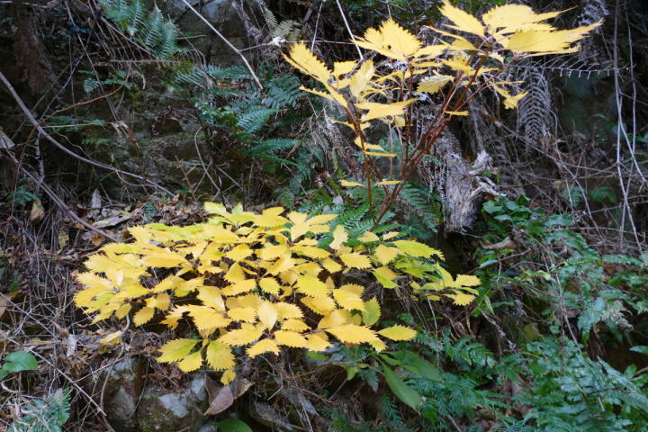 ミソサザイを2個体確認できた。冬季の山と言えばミソサザイが第一に思い浮かべる。30年前、師匠が繁殖用個体の捕獲に山奥に連れて行ってくれた。捕獲と言っても、もちろん許可を取っている。地鳴きを聴くと体の血が湧きたつように感じる。(大げさでなく)この日の不思議は、エナガとカラ類が見つからなったこと。一回くらい鳴いてもよさそうなのだが最後まで聴かれなかった。黄葉も綺麗だった。緑の中にあるからこそ美しい。緑色も良い。赤いのは樹の実。正月飾りに使えそうなのがあちこちに生えている。マムシグサの赤い実は見事だ。黒くなるまで記録に録ってやろう。