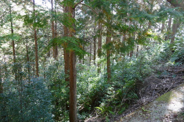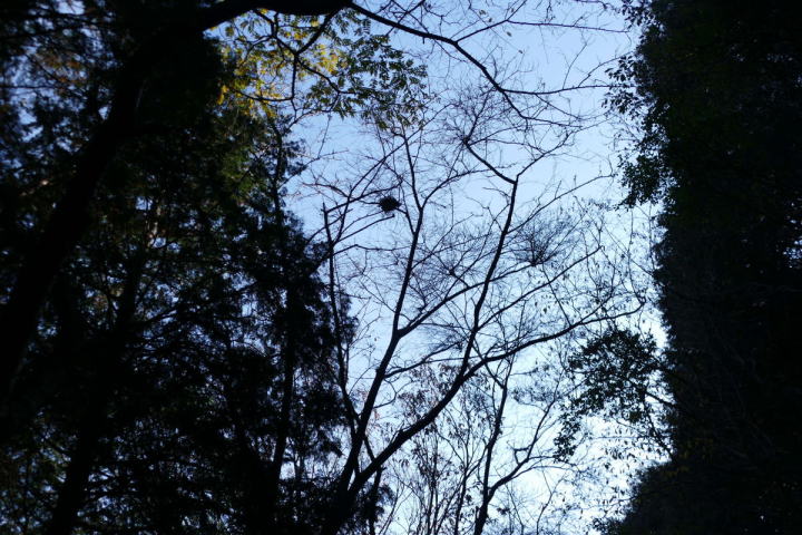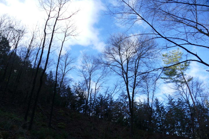 雨上がりの澄んだ空が広がって来た。気分は良いのであるが、野鳥の声があまり聴こえてこない。冬季の山野の野鳥観察は聴力検査状態になってしまう。もっとも、本物の検査をした記憶は朧状態である。ミソサザイやヒガラなどが聴こえたりすると俄然ん張り切ってします。今日は両者とも声は聴かれなかったが、ミソサザイは姿を一瞬見た。多分間違えではないと思う。ヒガラ・ウソなども待ち遠しい。ウグイスと間違いやすいのがシロハラだ。今の所姿も声も確認できていない。空を見上げて鳥を探す。下の田んぼでオオタカを見ている。ここ室林道で見られたら最高である。