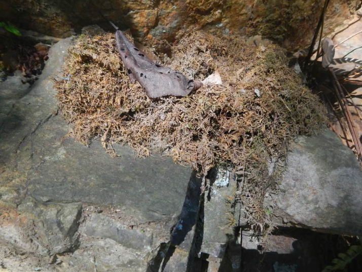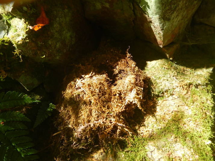 ショウジョウバカマがひっそりと咲いた。奥ゆかしい感じの色だ。直ぐ近くでオオルリの古い巣も見つかった。いままでどうして気が付かなかったかと、不思議に思うくらいに目立つ所にあった。