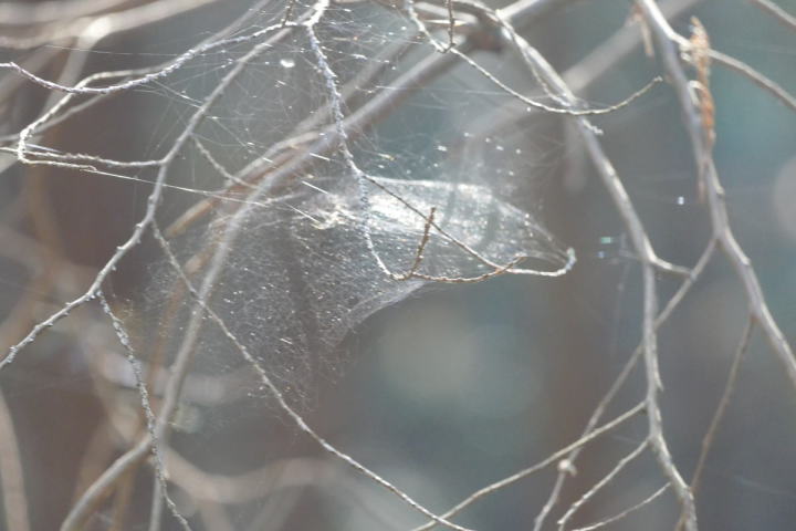 クモ糸が虹色に輝いている