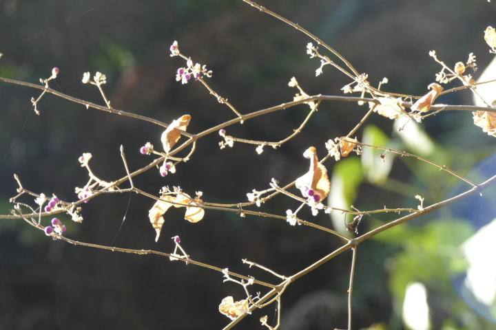 朝日が横から差してる時間帯に公園内を歩いた。駐車の車も公園の樹々も光り輝いて見える。そこに聴こえるのは野鳥の声。最もよく聴かれるのはやはりヒヨドリだ。それとメジロも多い。しかし、今注目したいのは冬鳥である。ジョウビタキは既にやって来ているが、似た地鳴きのルリビタキの姿が確認できていない。それらしい地鳴きは聴いてはいるが、ジョウビタキの可能性もあり確信が持てないでいる。これは、ここふるさと公園でも室林道でも同じである。