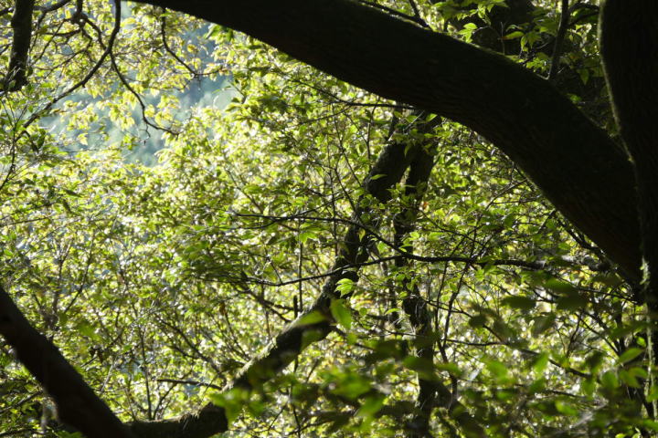 光が緑と戯れている感が好きだ。④オオルリの古い巣
