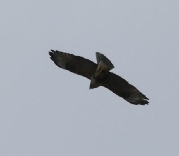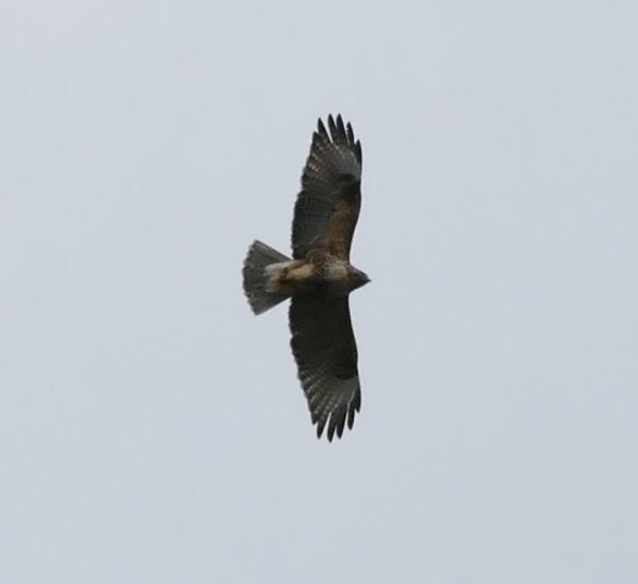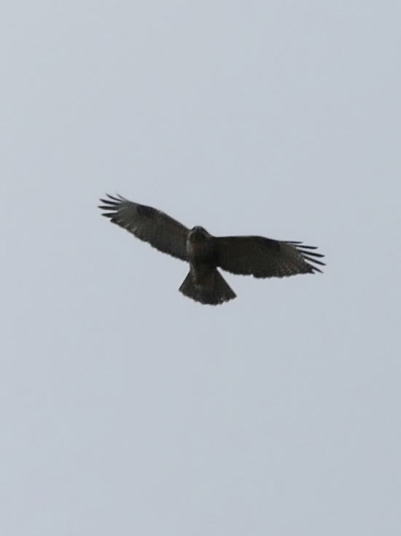 今日もコマドリの確認はできなかった。その代わりと言ってはオオルリに対して失礼ではあるが、オスの縄張りを争う様子(さえずりを交わしていたのでそう思った)やオスたちの近くにいたメスを確認することができた。3羽のオオルリとは別に、2ヵ所でオオルリのさえずりを聴く。一気に飛来してきたようだ。サンショウクイたちとほぼ同じタイミングだ。個体によってはキビタキを思わせる節廻しをするのがいる。ツクツクボウシの部分だ。そんな時には、オオルリとキビタキが同時に来たと思わせることになり、より注意深く聴く必要がある。この日の室林道は大いに賑わった。サンショウクイもいたし、ノスリがヒノキにとまり羽を休めていた。メジロのさえずりも賑やかになってきた。サクラが散り、落葉樹の若葉がこれからの主役となった。