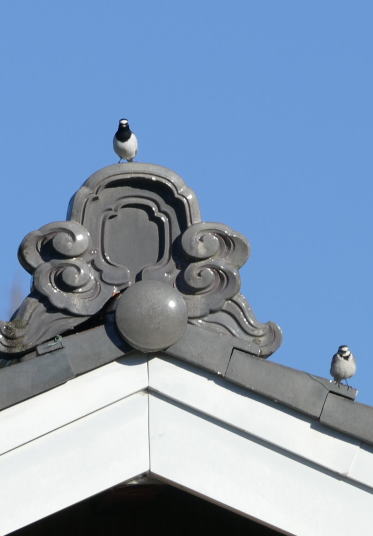 でも一応野鳥を先に ①②アオサギ(幼鳥) ③-⑥イソヒヨドリ(オス成鳥) ⑦⑧セグロセキレイ(オス成鳥)
