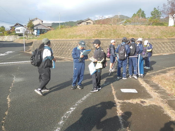 令和6年度、3学期の愛鳥・探検クラブに参加した。雲が広がり日差しが弱かったが、北風がほとんど吹いていない状態で、それほど身に染みる寒さは感じられなかった。参加児童の中に、見るだけで震えてしまいそうな、半ズボンの子がいたのには驚いた。こちらは、何枚も重ね着して来たというのに。学校を出発して暫くは、鳥の姿はおろか、声も聴かれない状態であった。時折、ヒヨドリが鳴きながら飛ぶばかりである。山陰川を2度横切ったが、2回目のクラブで、カワセミを4個体を見た時のようには行かなかった。辛うじて見られたのは、つがいと思しきノスリと一緒に待っていたトビだけであった。それが変わったのは羽根の田んぼに来てから。相変わらず個体数は増えないが、種類がぐっと多くなった。モズ、キンクロハジロ、ケリ、セグロセキレイ、ハクセキレイ、カワラヒワ、ハシボソガラスなどが見られた。特にカワラヒワは久しぶりの群れ(群れと言える程多くは無いが)であった。ちょうど中学の下校時間に当たっていたのか、田んぼの中の道をヘルメット姿の生徒が帰宅する姿に出会った。クラブの面々からは名前を呼ぶ声が発せられた。自分たちが学校に入った時に、高学年として世話になった、馴染みの顔顔なのだ。それで終わりかと思っていたが、そうでは無かったのだ。今度は、生徒たちが、わざわざ帰宅の足を止めて、一緒に帰りたいと申し出てきたのである。その時の光景は、改めて写真を眺めて見ると、実にほのぼのとしたものである。先生と生徒は、3年ほど前の児童と先生の関係に戻り、児童たちは、上級生との関係に戻ったのだ。萩小の子たちの特別な関係がよくわかるものであった。