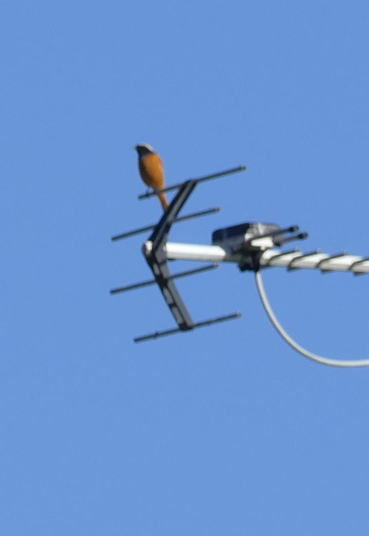朝方まで残っていた雨は既に上がり、真っ青なカンバスに白い絹雲が刷毛でひと掃きしたように、それは美しい空であった。7人の探検員は控えめに見ても個性的であり、愛鳥探検クラブにお似合いの子たちだ。この子達が萩の自然の語りべに育って欲しいと祈る。スタートして暫くは少し寂しい状態だった。それを打破したのが担任の先生。ソーラーパネルで遊ぶイソヒヨドリを見つけたのだ。すごく近い。全員しっかり見られた。メスであった。実は先生は、学校へ帰る道でも、今度はオスのイソヒヨドリを見つけたのであった。今回の探鳥会コースには6回川を渡るのであるが、「川を見たらカワセミだ」の合言葉のカワセミは残念ながら見る事ができなかった。それは欲張りと言うものだ。イソヒヨドリに勝る鳥を2つも見たのだら。羽根の田んぼに出た。そろそろ引き返す時間が近づいている。必死になってある小鳥を探す。12倍双眼鏡が威力を示した。畦道の緑色の草の中にノビタキを見つけ出した。すぐにフィールドスコープを向け子どもたちに見せる。かわいい!かわいい!この可愛い小鳥が大海を渡ることは皆知らない。もう一つは、最初の橋の上からカワセミを懸命に探した場所で見た。そう、ここは、この鳥を見るための特別な場所になったのだ。そう、その鳥はアルビノという極めて珍しい形態を持ったセグロセキレイ。屋根の上で、これ見よがしと真っ白い姿を見せびらかしていた、と感じたのであるが。ノビタキとアルビノセグロ、これ以上を望んではいけない気がする。校庭で終わりの会をやる。下校時間も間近い。何人かの子たちが今日の良かったことを話してくれた。とても嬉しそうに思えた。改めて、今日の天気と野鳥に感謝だ!