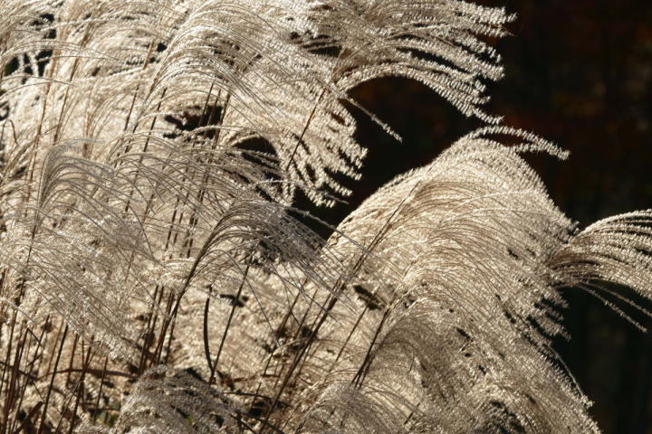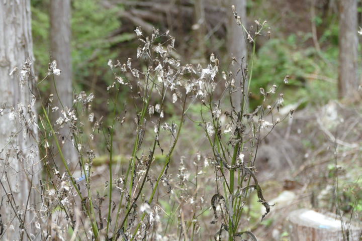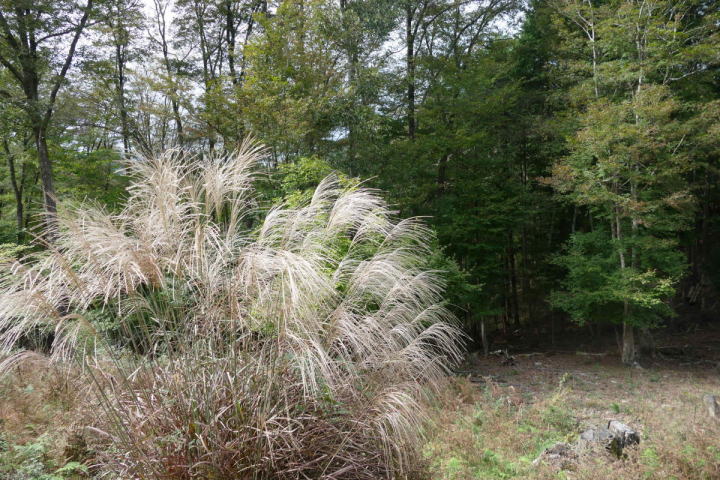 林道は秋の気配が色濃く漂っていた。紅葉こそまだないものの、一面に白い綿毛を付けた草草や、ススキの穂の艶やかな色が揺れている。空気が澄んでいて日向と日陰のコントラストがとても高い。最初に聴こえたのはカケスだった。もっと気温が下がると、たぶんここにいる個体たちも室林道へと下がって来るだろう。寺の入林道にはウグイスがほとんどいない。それだけでここはお気に入りのフィールドとなった。キセキレイの綺麗な姿を見た。この種もやがて平地に下りて、川辺の人気者になるであろう。シジュウカラ・ヤマガラ・エナガの三羽烏も今日は控えめであった。