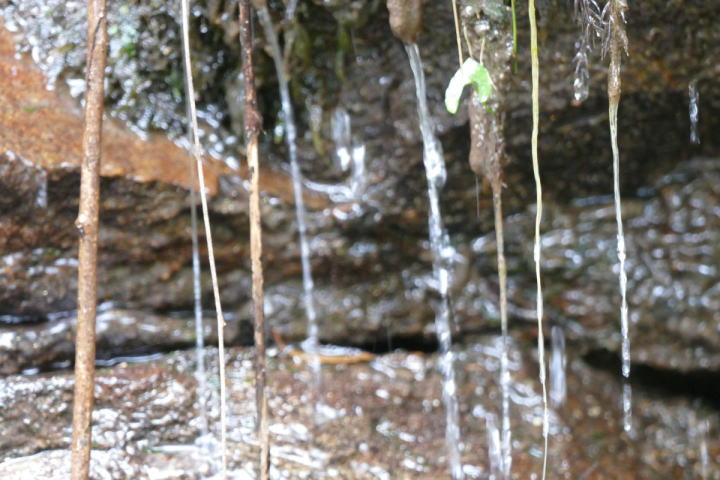 気温1度。生き物のように氷柱がとても大きく生長していた。しっかりと防寒対策をして歩き出す。鳥の声はとても少ない。