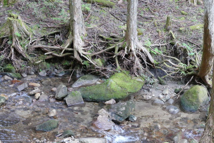 予想以上にウグイスのさえずりが多かった。それだけ個体数が多いということなのだろう。もう普通にさえずるのも多い。去年の8月半ば過ぎに最後のさえずりを聴いてかなり経った。再びウグイスの声を聴いて感じるのは、やはり日本産野鳥の中では一番の美声だなあということ。好き好きではあるが私はそう思う。コマドリも大好きではあるが。シジュウカラ、ヤマガラもどんどんとさえずっていた。その中にヒガラが無かったのは残念である。この時期には動物の世界にも面白いことがある(ハズ)が。ヒキガエルが冬眠から覚めて合戦をするのである。それは勿論比喩で、本当は子作りなのだ。そして、湧き水の中にくねくねと寒天状になった卵を産む。春には小さなオタマジャクシが生まれ出る。ヒキガエルの子である。ところがこのオアシスが実に危うい。大雨で土砂が流れて埋まることは頻繁にあることだ。そうなると産卵ができないわけだ。春先どこからともなくカエルの声が聴こえてくる。まるで岩の中に秘密の洞窟があってその中に居るかのようだ。岩場を見るとついついあるものを探してしまう。それはオオルリのす。テラスのような場所にお椀の形をした巣があることが多い。この日も少し古い巣を見つけた。あまりにも目に付く場所にあり、どうして今まで見つけられなかったと不思議に思うほどである。その巣から程近い水脈の滴る所で2輪の花を見た。ショウジョウバカマだ。まだまだ春爛漫には間がある今の時期にひっそりと咲く花である。薄ピンク紫の花はとても品がある。