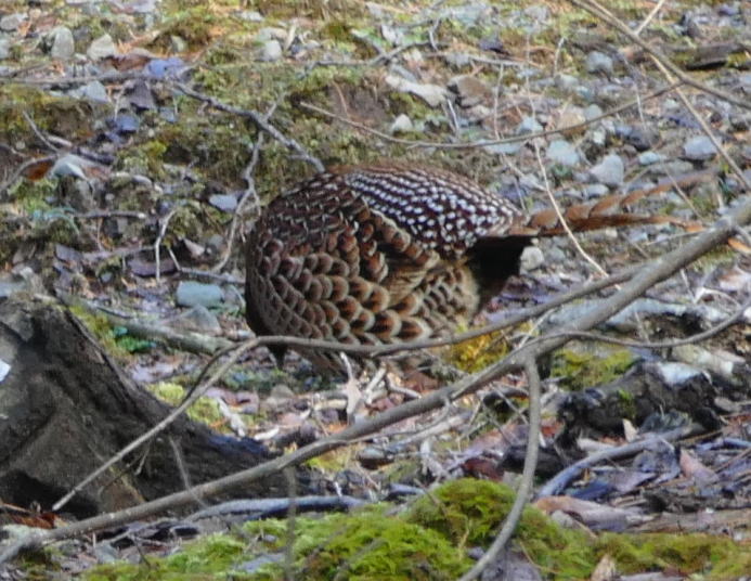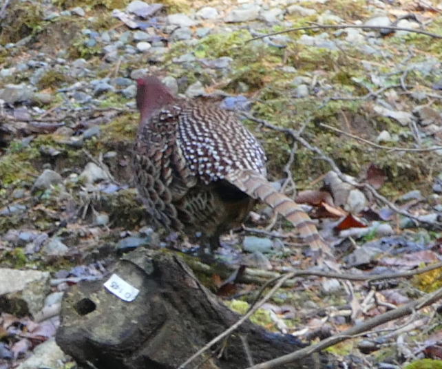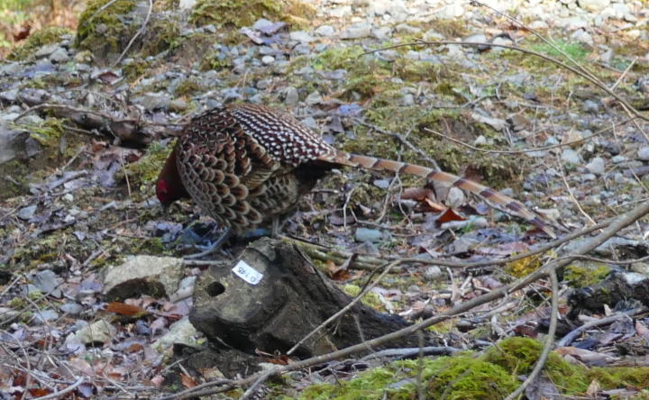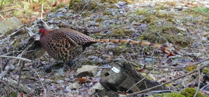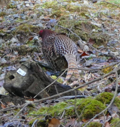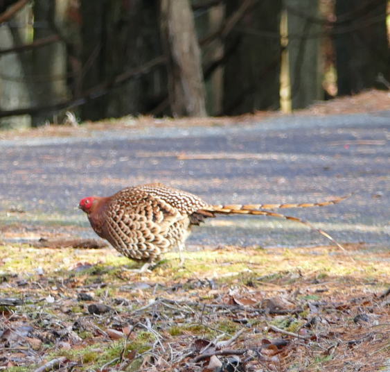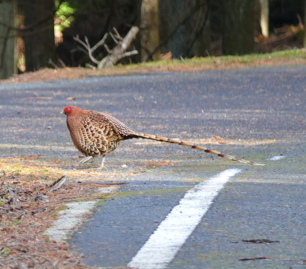 カーブを回るとその先にいたのがヤマドリであった。最初にオス。次いでメスが現れた。慌ててカメラのスイッチを入れる。オートフォ―カスからマニュアルに変えて撮る。コツは沢山撮ること。