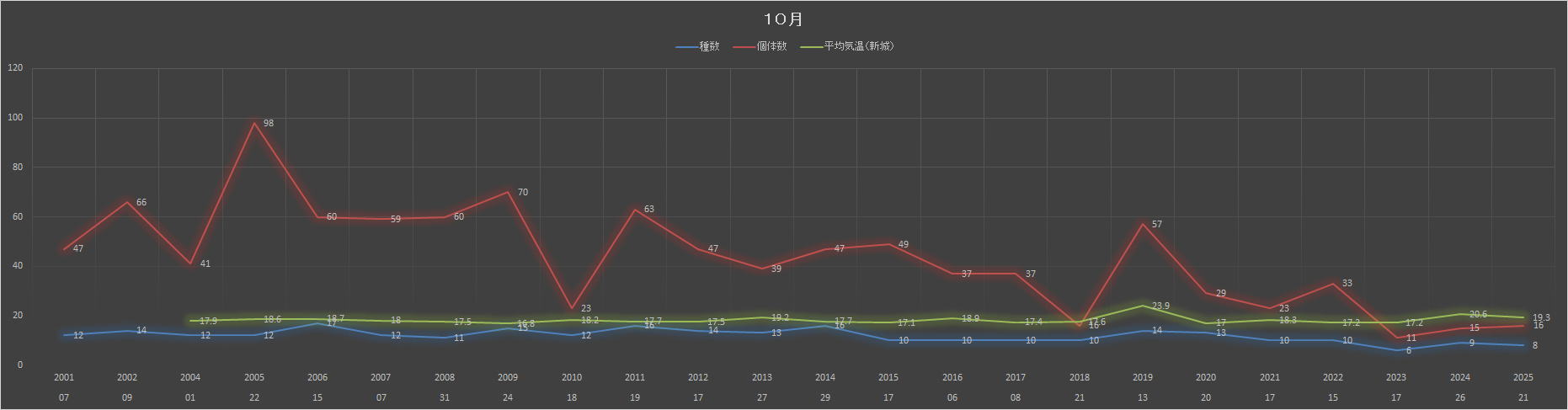 | クロジ | Emberiza variabilis | 1 | 2 | 6 | 1 | 10 | |||||||||||||||||||