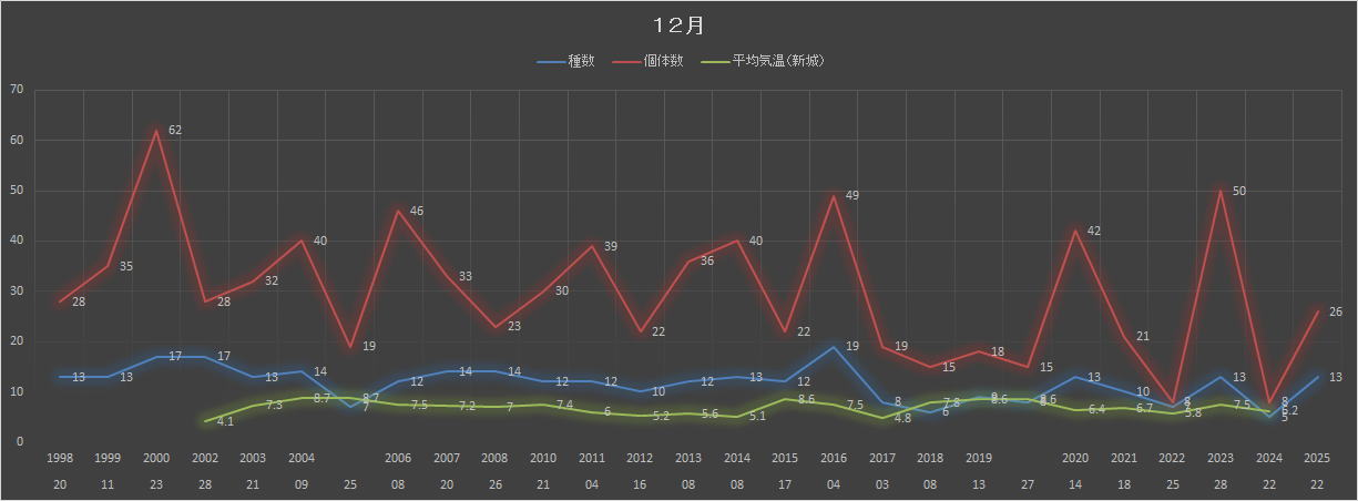 | カワラヒワ | カワラヒワ | Carduelis sinica | 1 | 1 | 12 | 5 | 1 | 1 | 1 | 22 | |||||||||||||||||||||